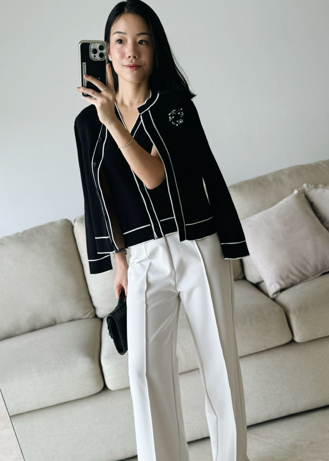 Handmade black brooch with beads and pearls.